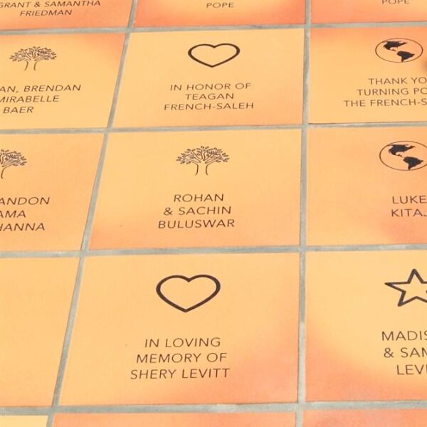 A beautiful shot showing laser engraved 12” x 12” tiles utilized as a very successful fundraising tool. PTA fundraiser, PTG capital campaign, School Brick Sale, Church Memorial Pavers, Community Center…