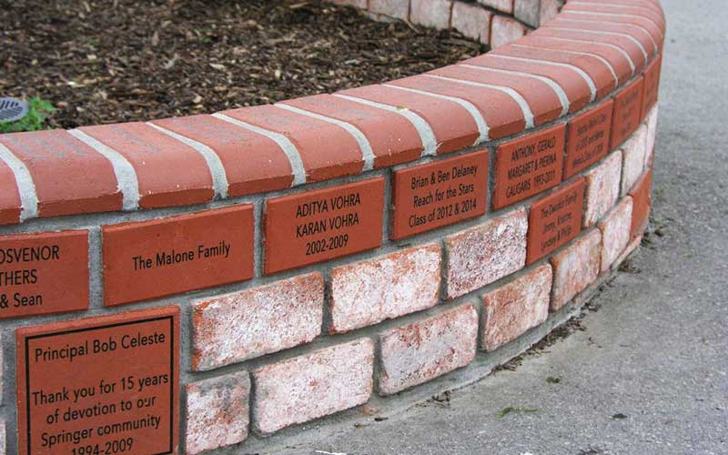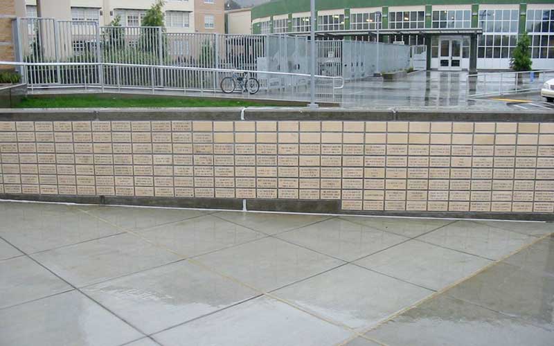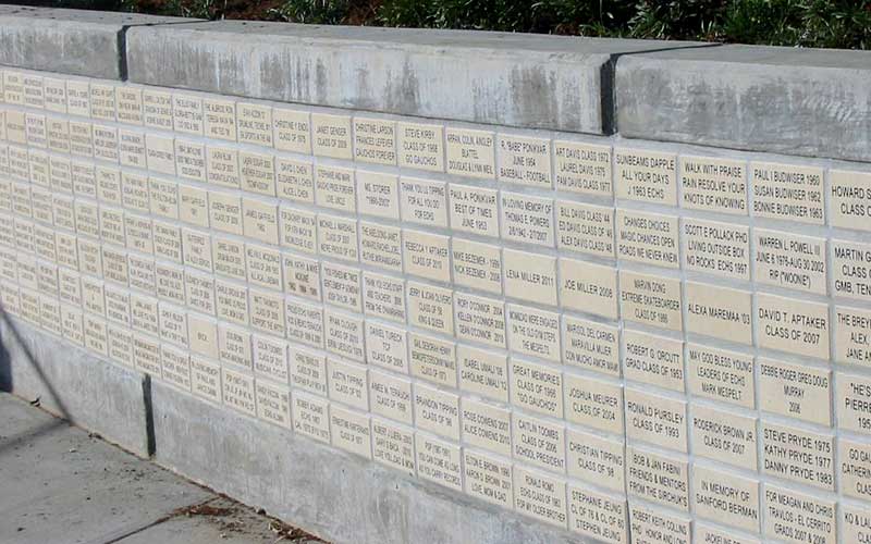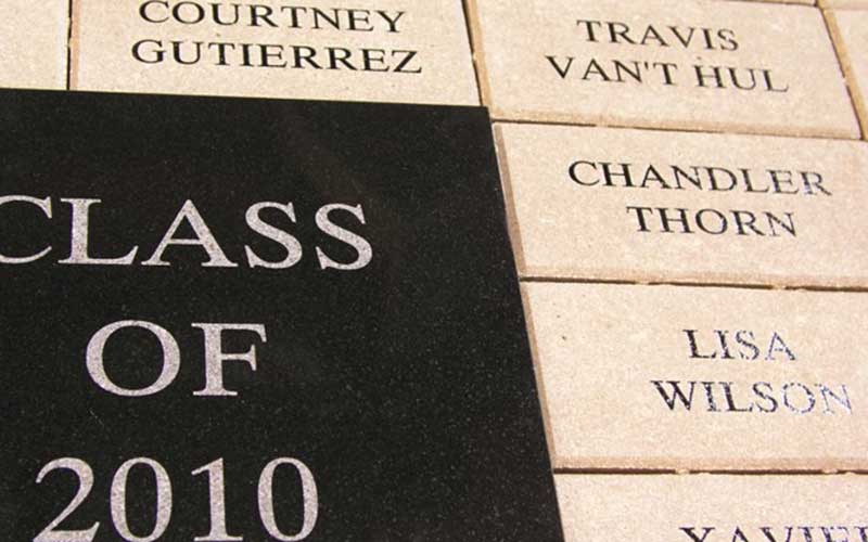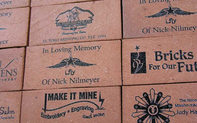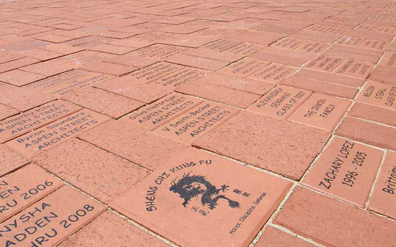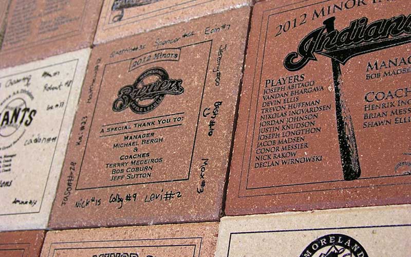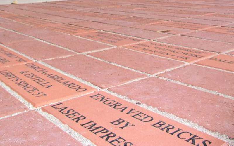Brick Installations Laser Engraved Baseball Team Bricks for Little League Fundraiser Laser Engraved Donor Bricks for Veterans Memorial in Anthem Arizona A laser engraved brick fundraiser to generate revenue for a new school marquee at American High School.